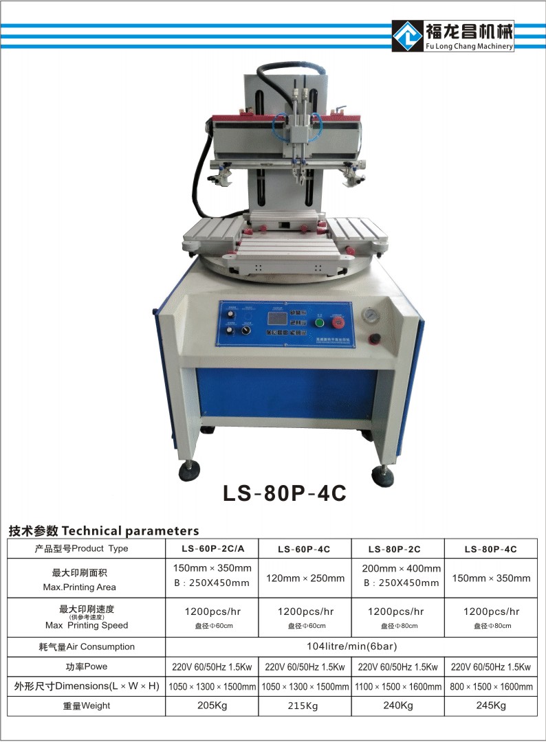 全自動高速旋轉(zhuǎn)平面絲印機LS-80P-4C
