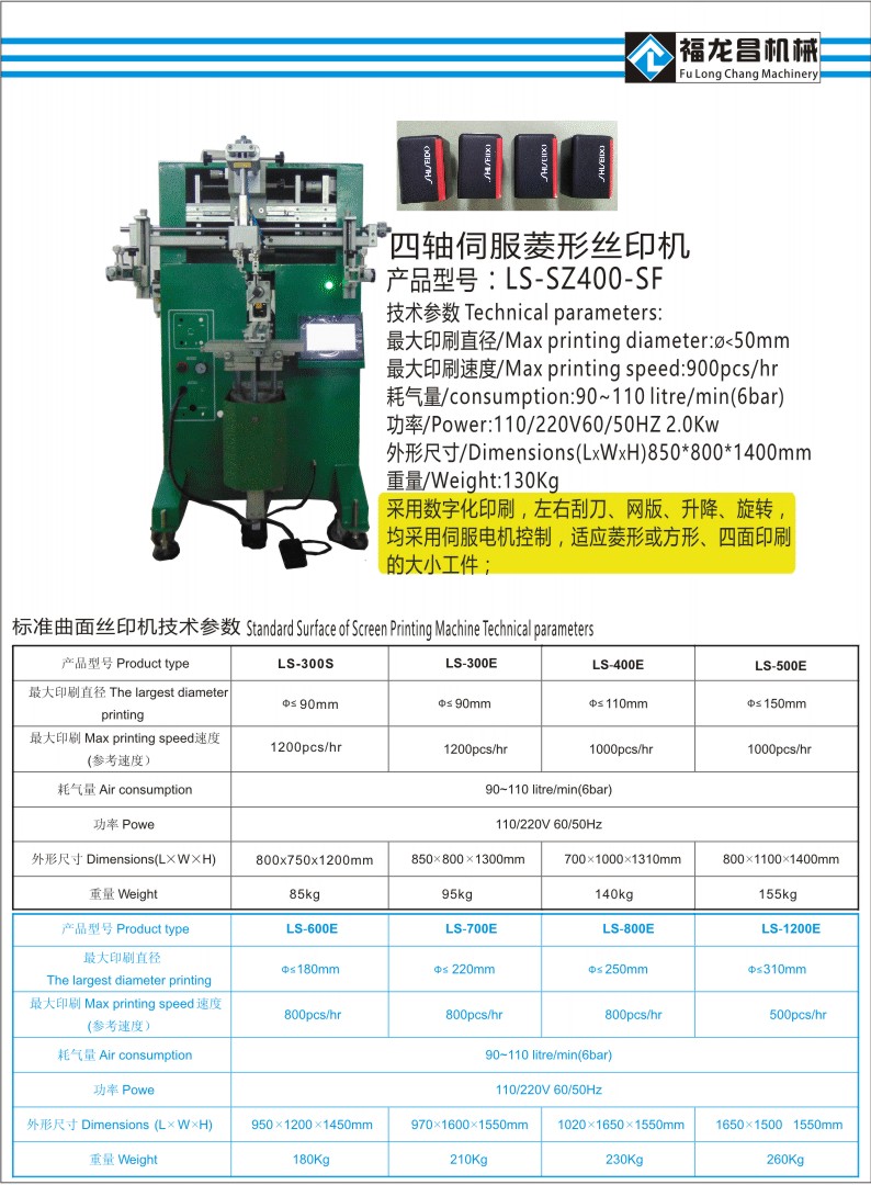四軸伺服菱形絲印機(jī)LS-SZ400-SF